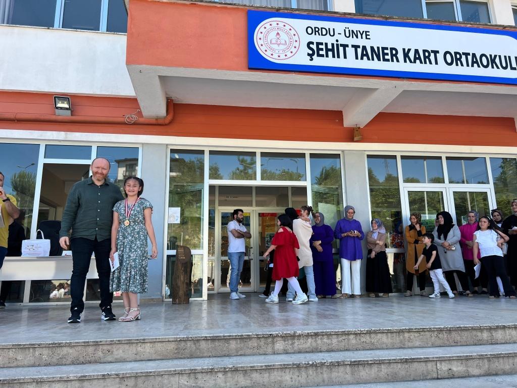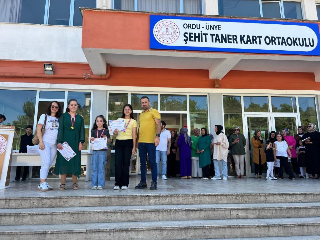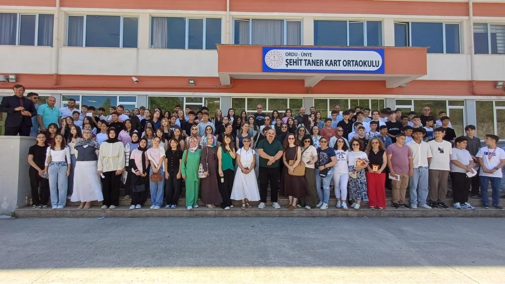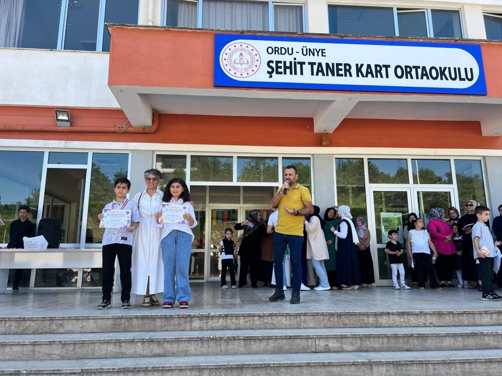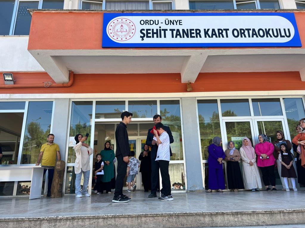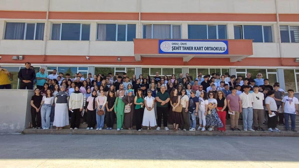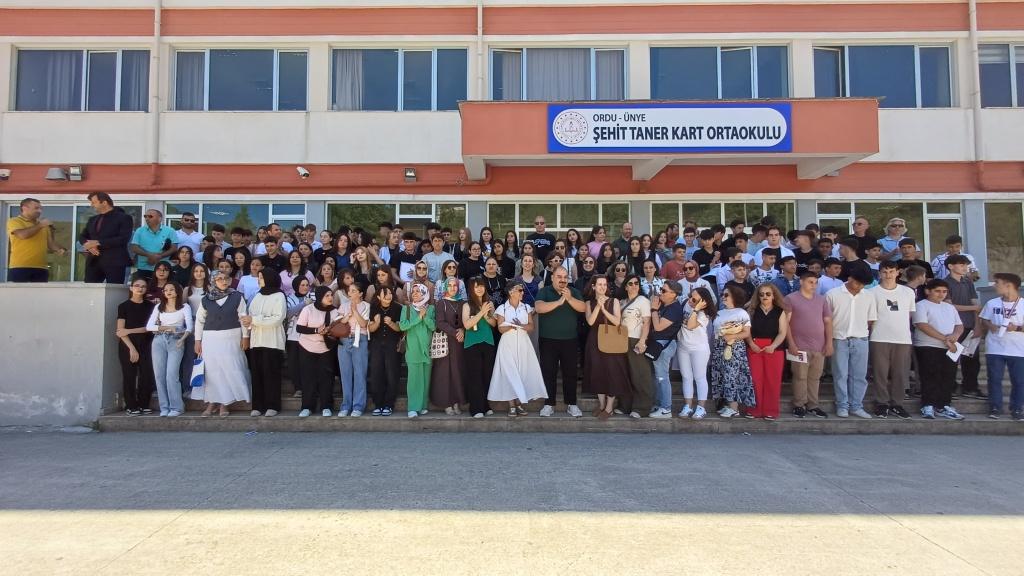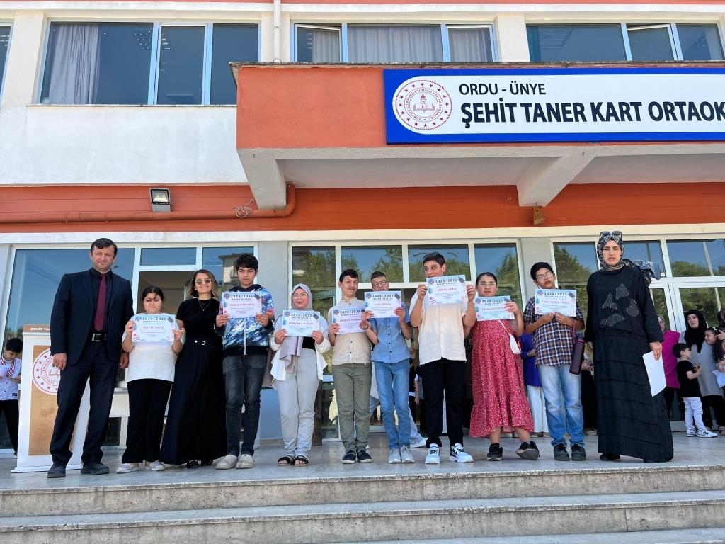 2024–2025 eğitim-öğretim yılının sonuna gelinirken, Şehit Taner Kart Ortaokulu’nda düzenlenen yılsonu karne töreni coşku ve gurur dolu anlara sahne oldu. Okul bahçesinde gerçekleşen törende, öğrenci ve veliler yoğun katılım gösterdi. Program; saygı duruşu ve İstiklal Marşı’nın ardından, okul müdürü Nazım Aslaner’in öğrencilere yönelik tebrik konuşmasıyla başladı.