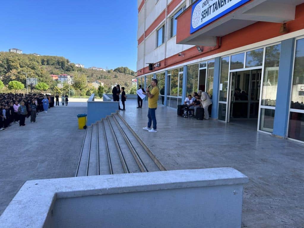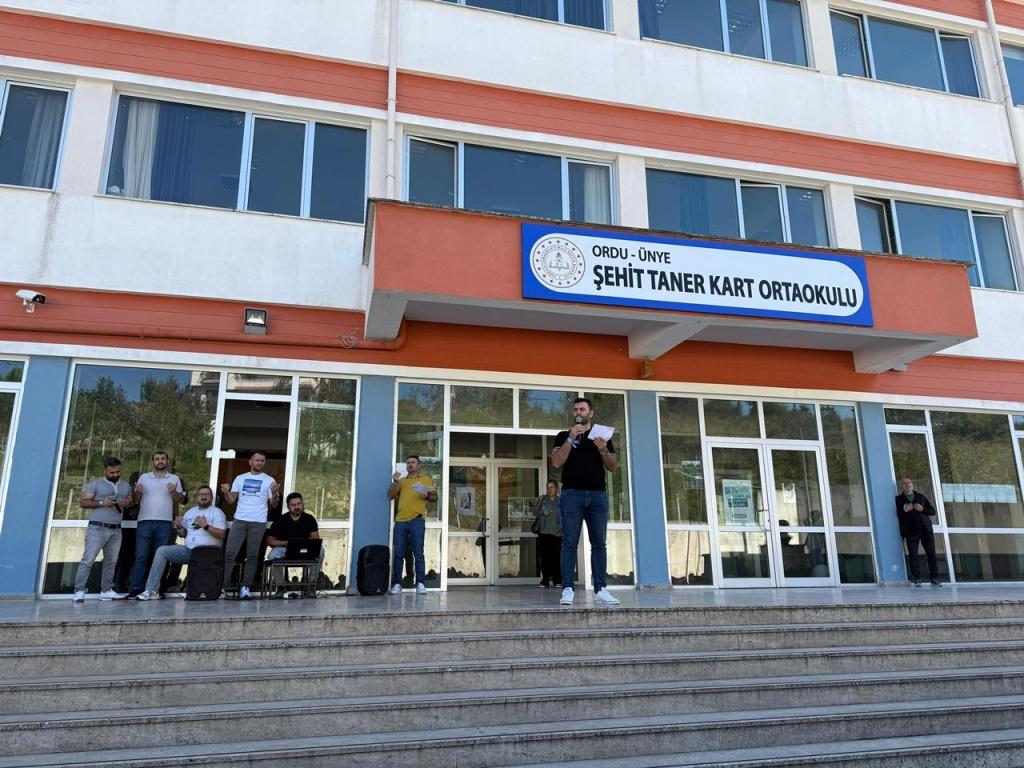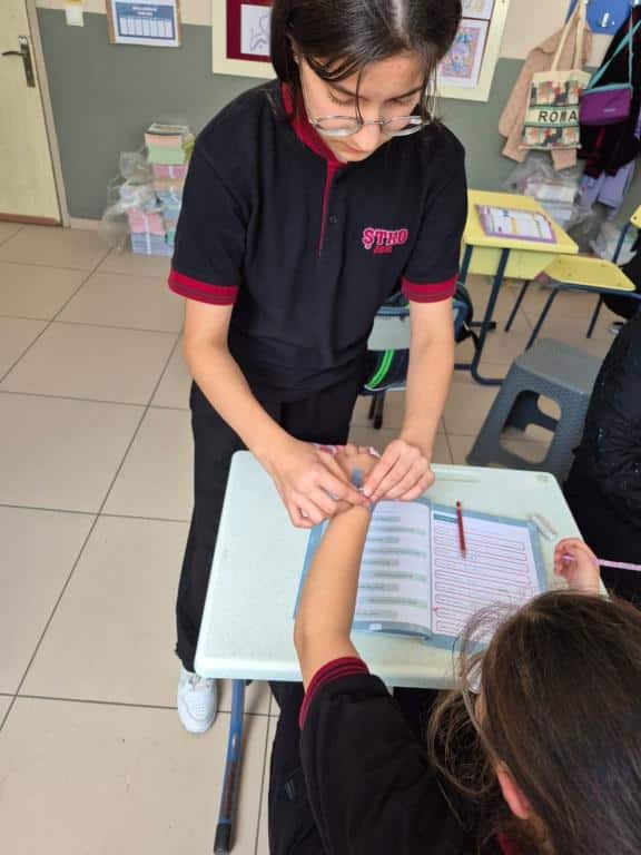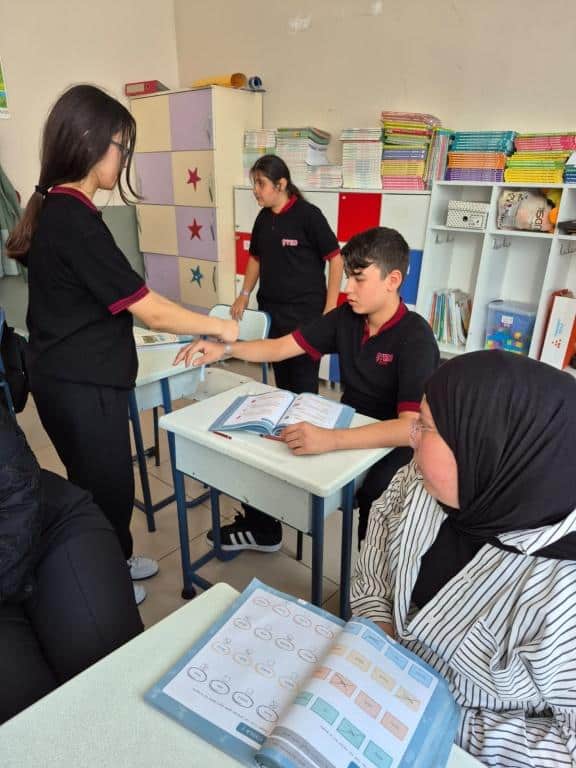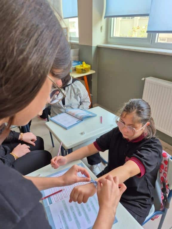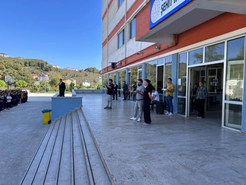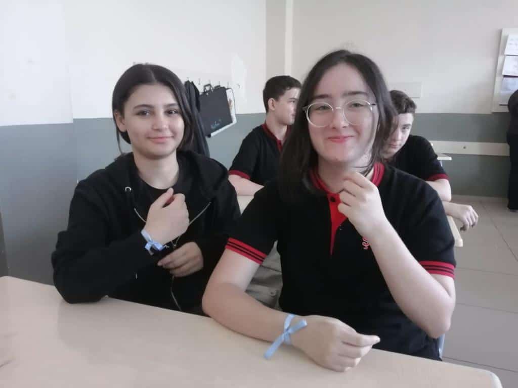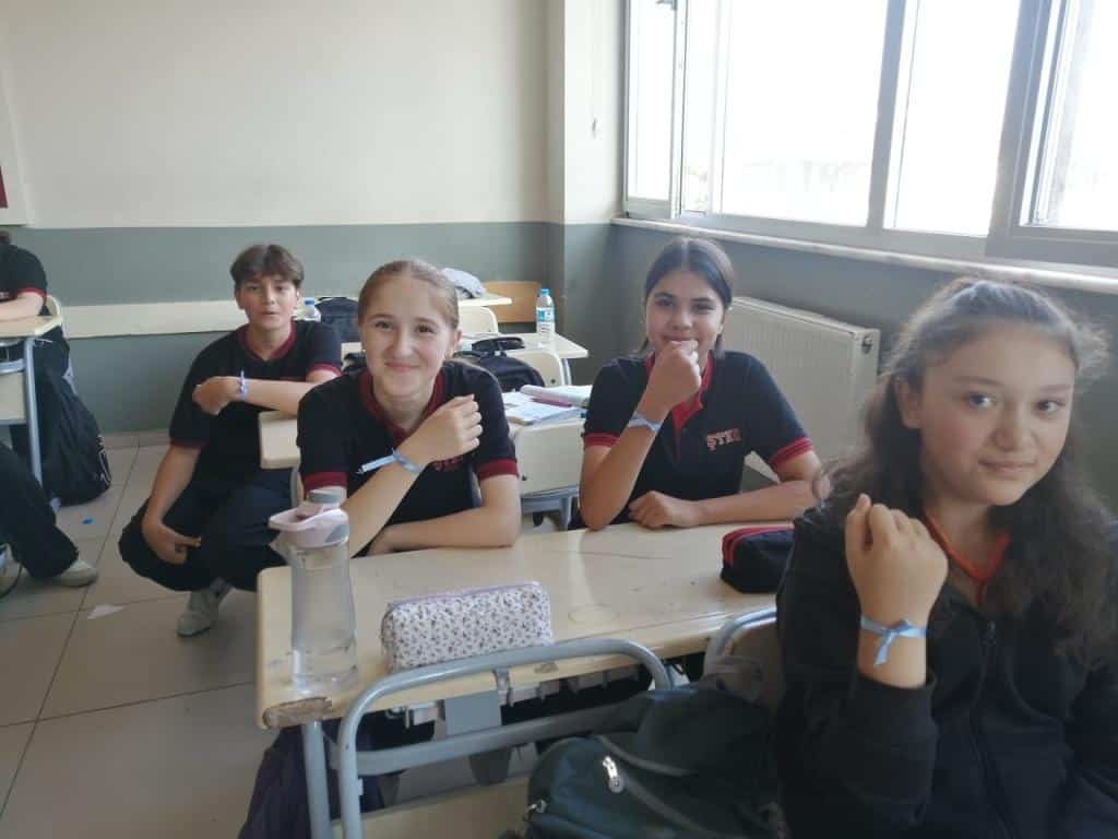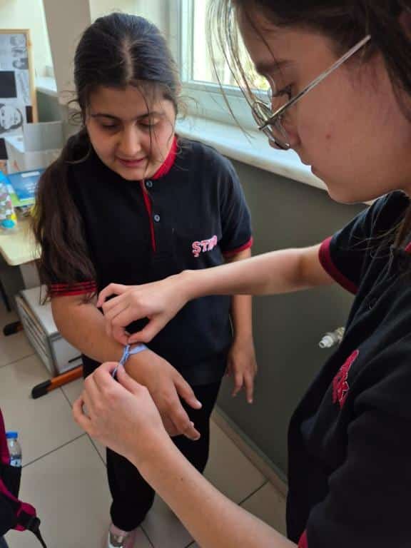 Etkinlik kapsamında öğrenci ve öğretmenlerimize, Filistin halkıyla dayanışmayı simgeleyen mavi kurdeleler dağıtıldı. Katılımcılar, kurdeleleri biletlerine bağlayarak Filistinli çocuklara umut ve barış dileklerini sembolik olarak ilettiler.